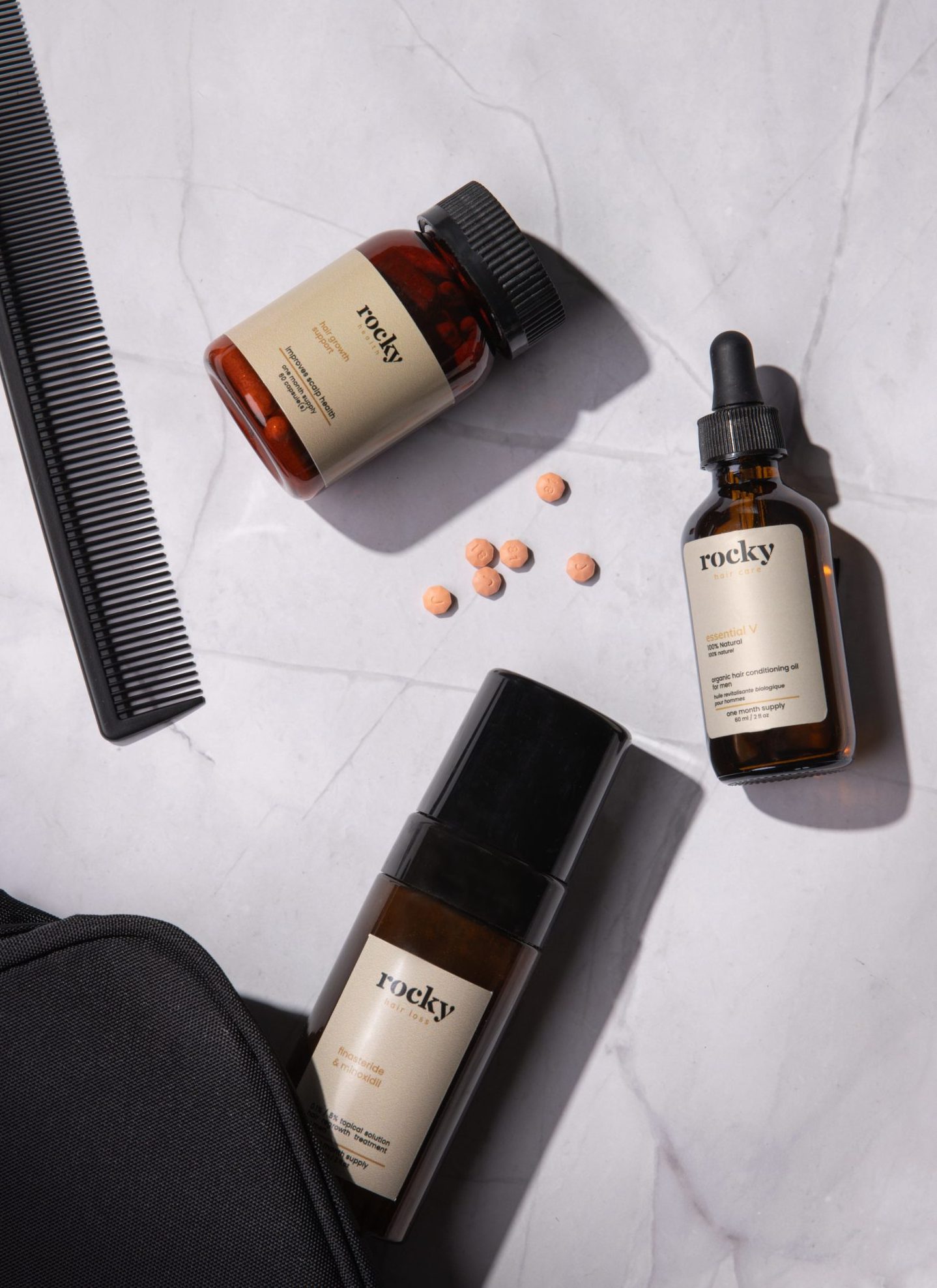- Rocky Health 2-in-1 Foam: A Canadian innovation that combines Finasteride + Minoxidil in a topical foam. This gives men the benefits of both medications, without the need to take daily oral pills, and may lower the risk of systemic side effects.