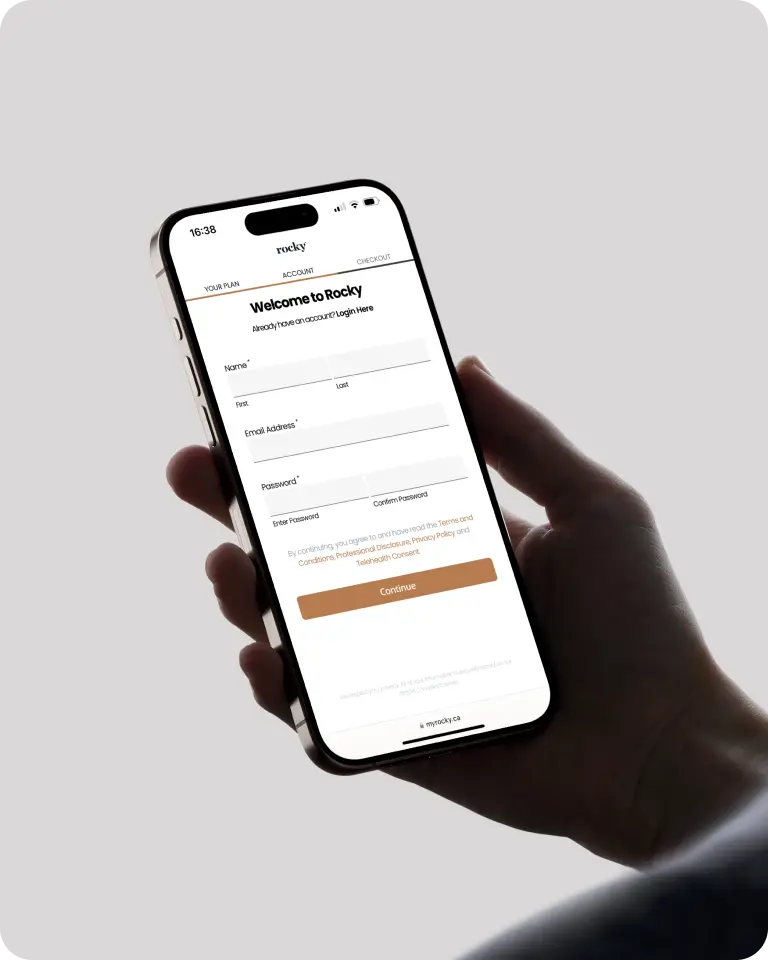 - Convenient and discreet access: With Rocky Health’s virtual care platform, you can start treatment online, receive a prescription, and have medication delivered directly to your door.